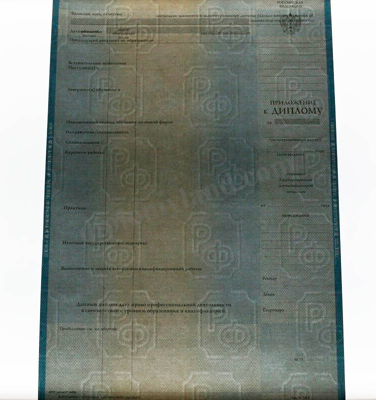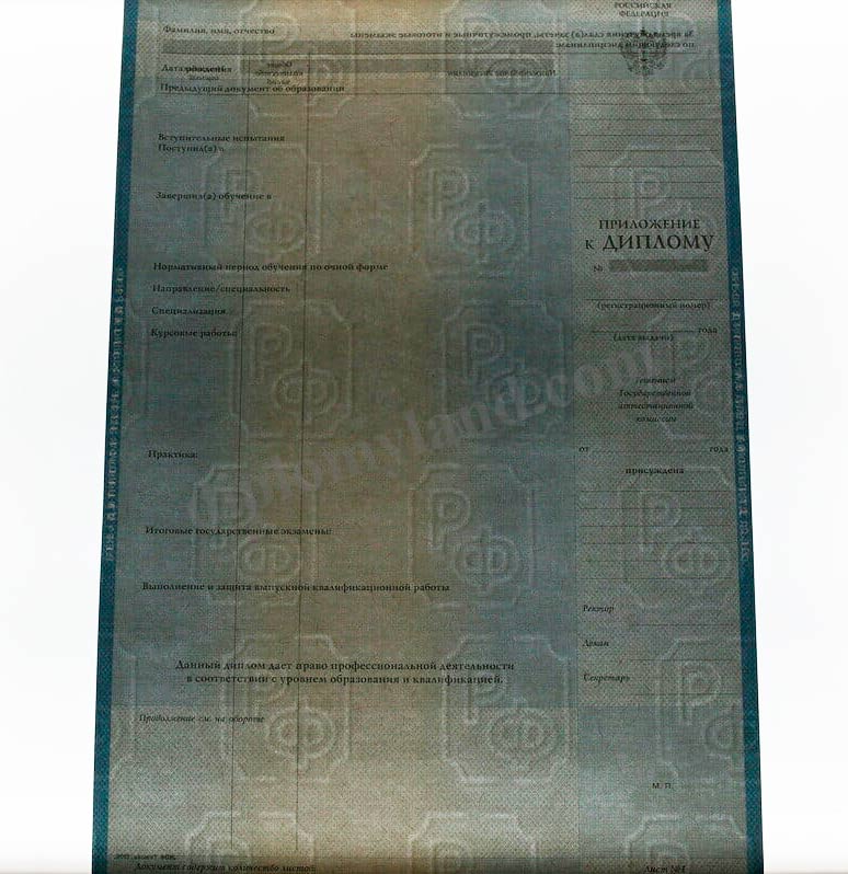 И, конечно, мы не забудем подготовить приложение с указанием всех вычитанных предметов, количества часов и полученных баллов и зачетов. Подготовленный нами диплом специалиста пройдет все возможные проверки, не вызвав подозрения. За дополнительную плату заносим диплом Вуза в реестр, проводимчерез соответствующую базу образовательных учреждений РФ.